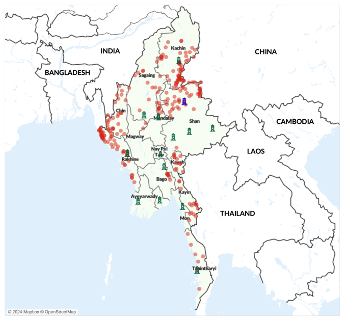 The competition between these two alliances has manifested in sporadic armed clashes. In June 2024, fighting escalated over the control of the strategic town of Matupi, a critical waypoint between northern and southern Chin and toward Rakhine. While their fighting did not prevent military successes, it delayed progress and wasted resources, resulting in civilian displacement and casualties on both sides. Both sides tried to resolve the conflict through dialogue with mediators in Delhi city, India but failed to do so.21 Overall, ACLED records 24 cases of resistance allies fighting against one another in Chin state, compared to 242 instances of collaboration against the military — 13 of which were clashes between members of the aforementioned two alliances (see map below).