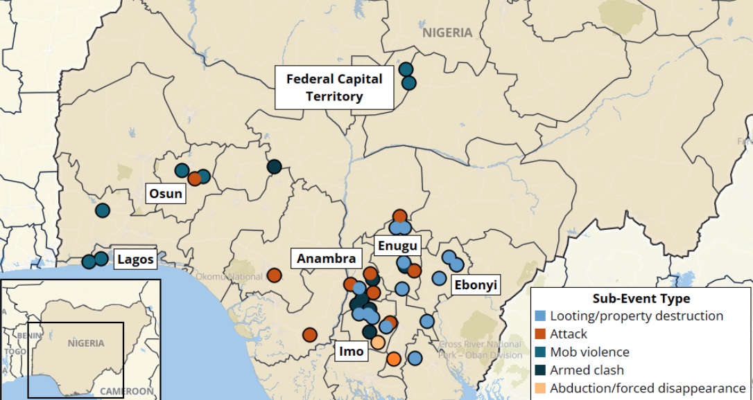 Between January 2021 and February 2023, ACLED records 44 violent incidents involving INEC offices and staff. The frequency of these incidents in the 12 months before the 2023 election (23 events) is higher than during the same period between 2018 and 2019 (11 events), before a post-2019 election spike, with more than 40 events recorded between February and March 2019 alone. The late spike in violence targeting INEC offices and staff in 2019 shows the potential for violence following the 2023 elections and into the gubernatorial voting period. Polling stations in central and southern Nigeria were also targeted during the #EndSARS demonstrations, the youth-led movement that spread across the country in 2020 calling for an end to police brutality and the disbandment of the Special Anti-Robbery Squad.