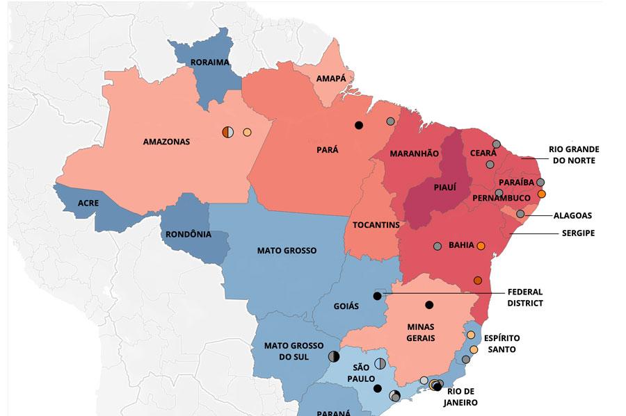 In 2022, violence has affected parties across the political spectrum, including members from constituent parties of both the ‘Brazil of Hope’ and ‘For the Good of Brazil’ coalitions, as well as the ‘Brazil for All’ coalition, which consists of center-right and catch-all parties, and other unaffiliated lists. Most instances of violence targeting party representatives and supporters have occurred in the Bolsonaro-backing states of Rio de Janeiro, São Paulo, and Espírito Santo and Lula-dominant Bahia state, as well as in Amazonas state (see map below).