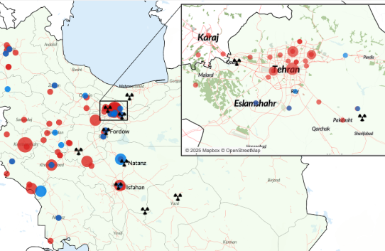 The direct confrontation between Israel and Iran marks a historic rupture in regional warfare dynamics. Israeli strikes — under the codename Operation Rising Lion — were framed as a preemptive move to neutralize Iran’s nuclear program. Public statements from Israeli officials emphasized disrupting enrichment efforts at key sites like Natanz, Isfahan, and Fordow.1 However, despite some confirmed damage, Fordow remains intact due to its fortified underground structure, prompting broad acknowledgment that Israel lacks the military capability to destroy such a facility without assistance from the United States. While Israel has yet to completely degrade Iran’s nuclear infrastructure, it has successfully decapitated key military and intelligence leadership. It has also extended the campaign to civilian and industrial targets, resulting in the deaths of hundreds of civilians, including aid workers. On 16 June, an Israeli airstrike hit a Red Crescent ambulance in Tehran, killing two aid workers — a stark example of the growing toll on humanitarian responders.