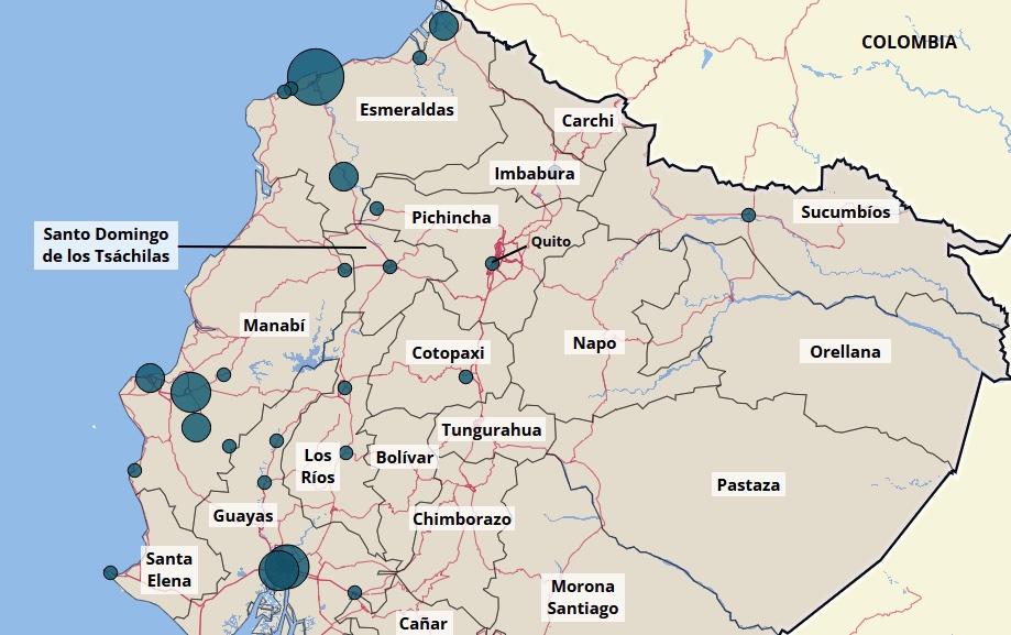 While the perpetrators remain unidentified in almost all recorded cases, violence targeting politicians has widely been connected to organized crime. Since 2022, these attacks have concentrated in the coastal provinces of Esmeraldas, Guayas, and Manabí (see map below), where the government has recorded the highest homicide levels due to their strategic location on drug trafficking routes.9 These provinces have been coveted for their access to ports and connection to the Colombian border, including the department of Nariño, where coca is grown and processed.10 The killing of Villavicencio in Quito, located in Ecuador’s mountainous region, however, contrasts with areas where organized crime group activity has been observed in recent years. It indicates that in addition to the control of ports, criminal groups have expanded their reach to other areas of the country.11